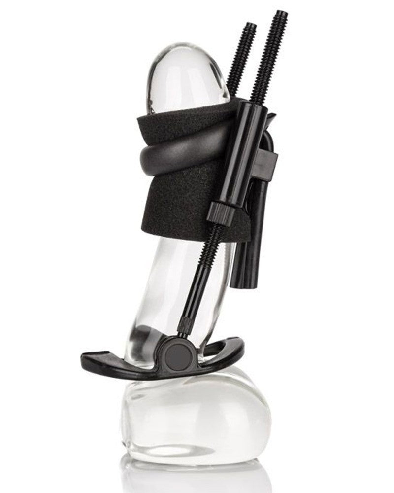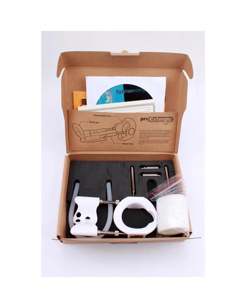 Un extenseur de pénis est un dispositif médical qui utilise la méthode de traction pour allonger le pénis. Il se compose d'un cadre en métal ou en plastique, d'un support pour le gland et de deux barres qui exercent une tension sur le pénis. L'utilisateur place l'extenseur autour de son pénis et le serre grâce à de vis, de sangles ou de ceintures. Une fois l'extenseur en place, il exerce une traction constante sur le pénis, ce qui peut stimuler la croissance des tissus.